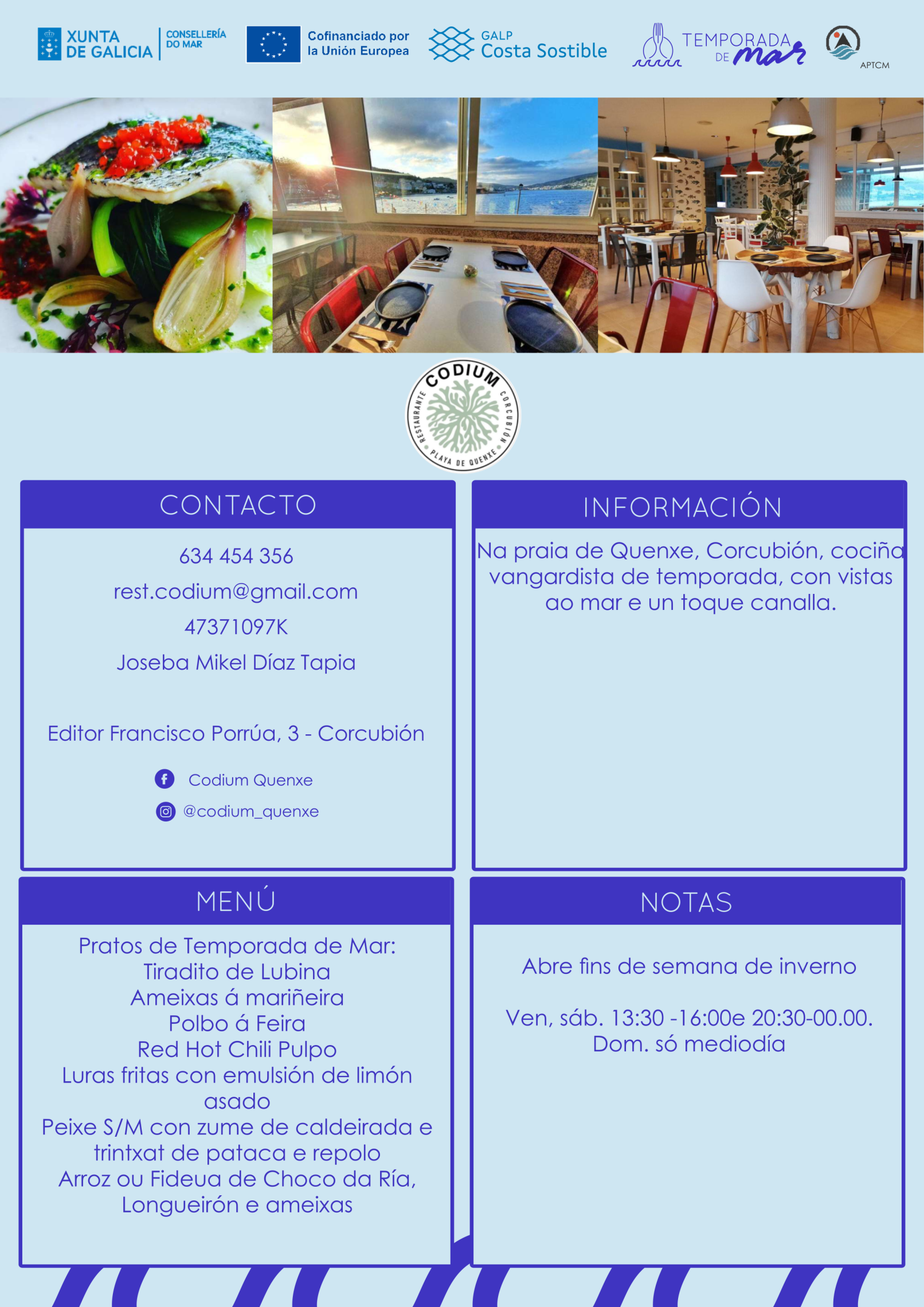 - Cociña vangardista de temporada, con vistas ao mar e un toque canalla.