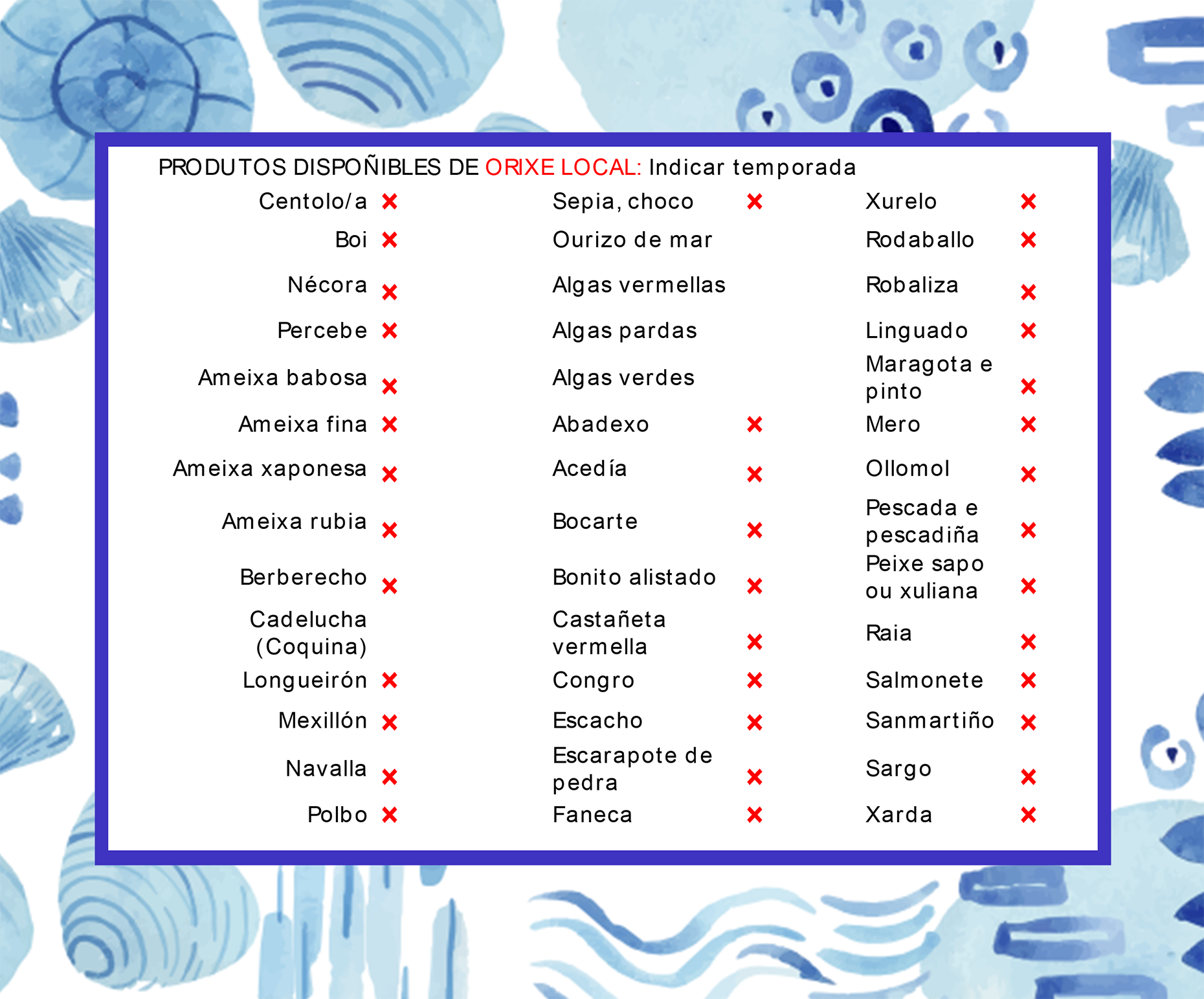 Peixe e marisco.